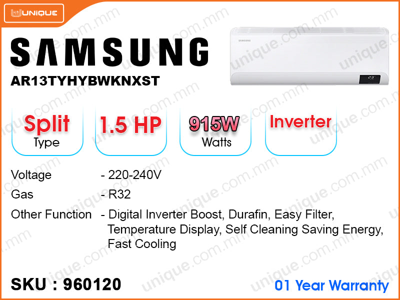 SAMSUNG AR13TYHYBWKNXST Split, 1.5HP Inverter Air Conditioner