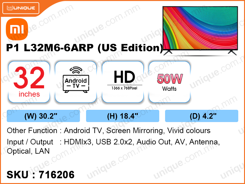 Mi P1 32" L32M6-6ARP LED HD Android TV (US Edition)