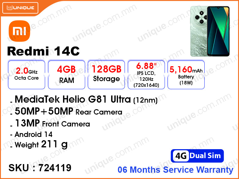 Redmi 14C 4G 4GB, 128GB (06 Months Warranty)