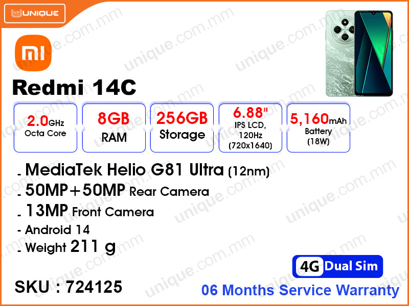 Redmi 14C 4G 8GB, 256GB (06 Months Service Warranty)
