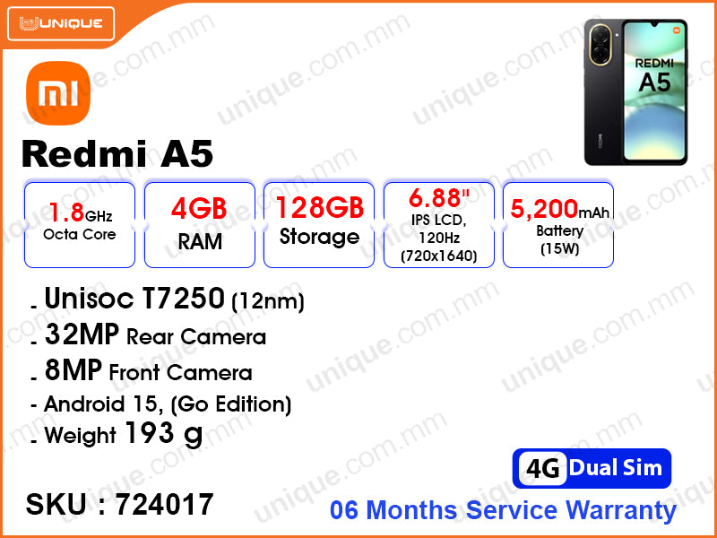 Redmi A5 4G 4GB, 128GB (06 Months Service Warranty)