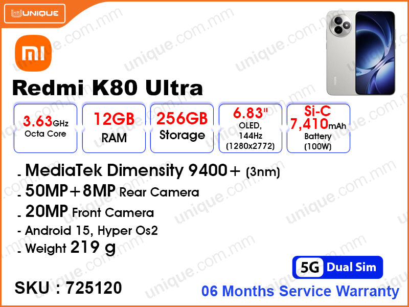 Redmi K80 Ultra 5G 12GB, 256GB (06 Months Service Warranty)