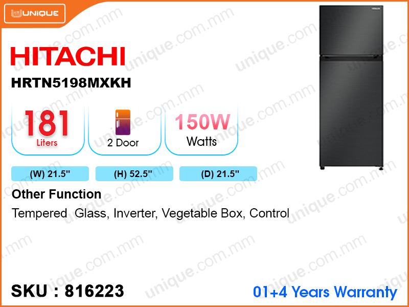 HITACHI Refrigerator HRTN5198MXKH 2Door, 181L