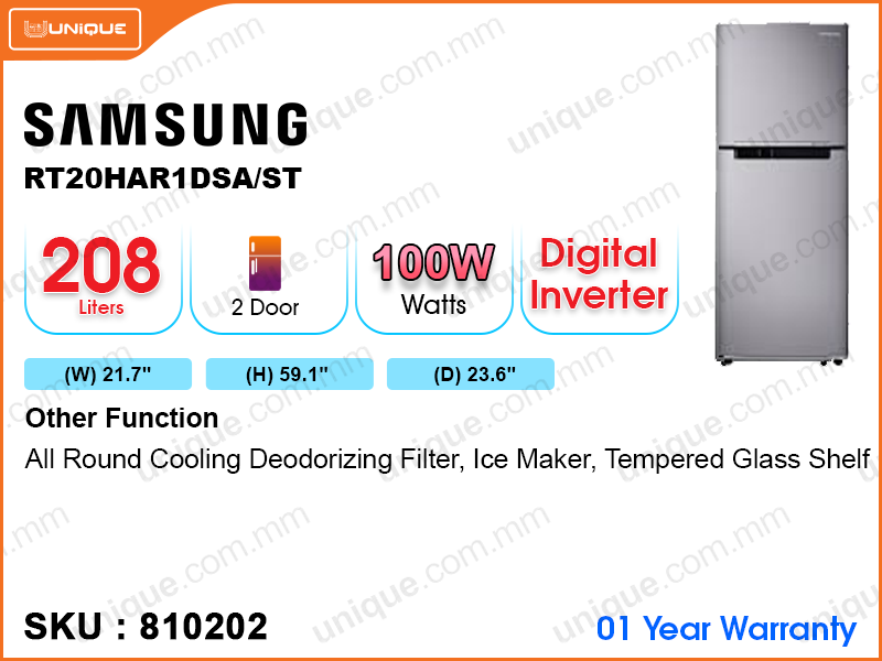 SAMSUNG Refrigerator, RT20HAR1DSA/ST 2Door, Digital Inventer, 208L