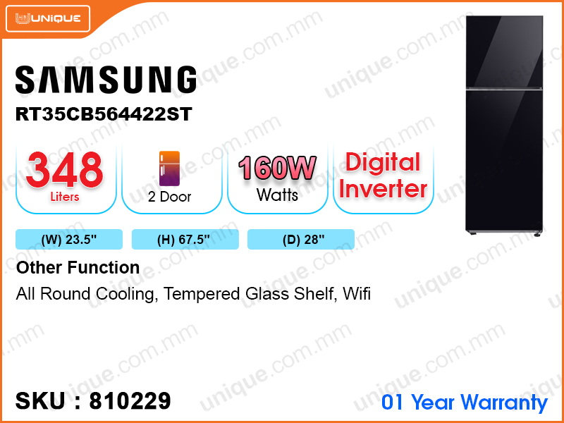 SAMSUNG Refrigerator RT35CB564422ST 2Door, Digital Inventer, 348L,Glass Door