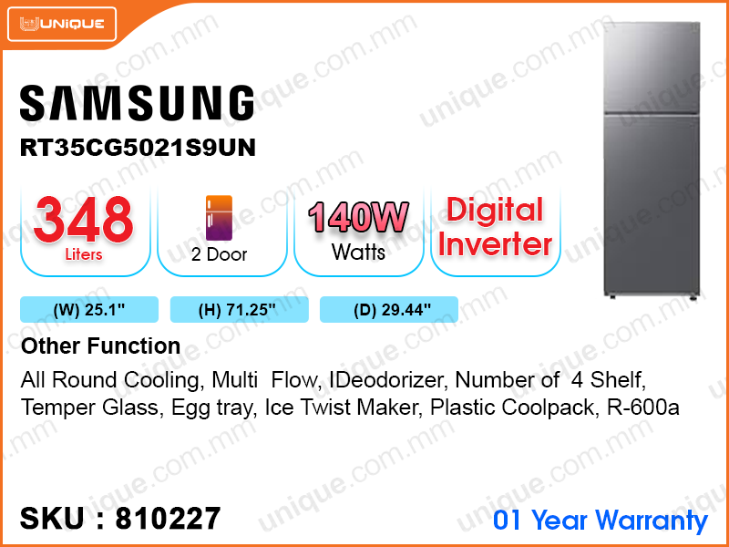 SAMSUNG Refrigerator RT35CG5021S9UN 2Door, Digital Inventer, 348L