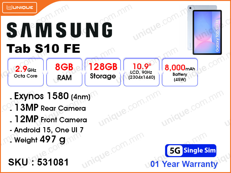 SAMSUNG Galaxy Tab S10 FE 5G 8GB, 128GB