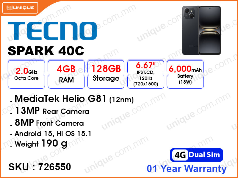 TECNO SPARK 40C KM4k 4GB, 128GB