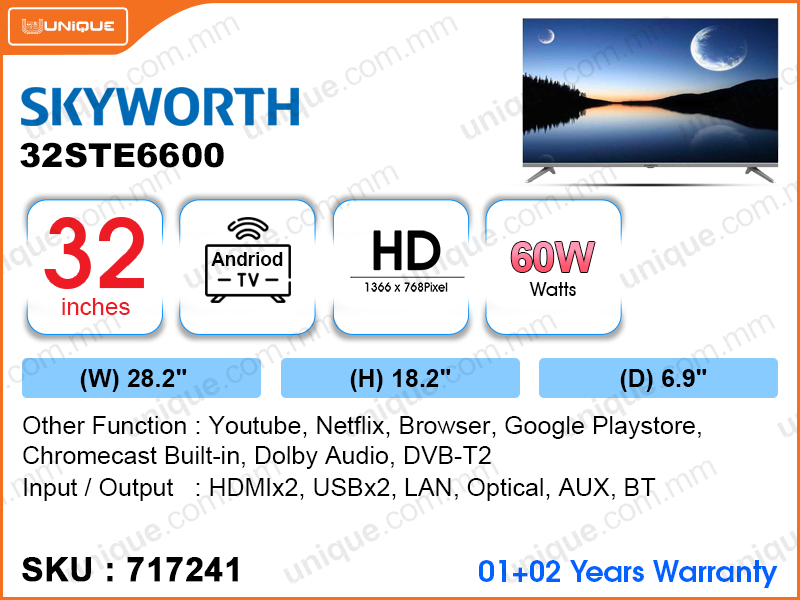SKYWORTH 32" LED HD Andriod TV 32STE6600