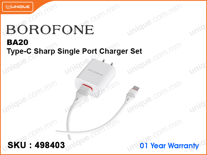 BOROFONE BA20 Black Type-C Sharp Single Port Charger Set