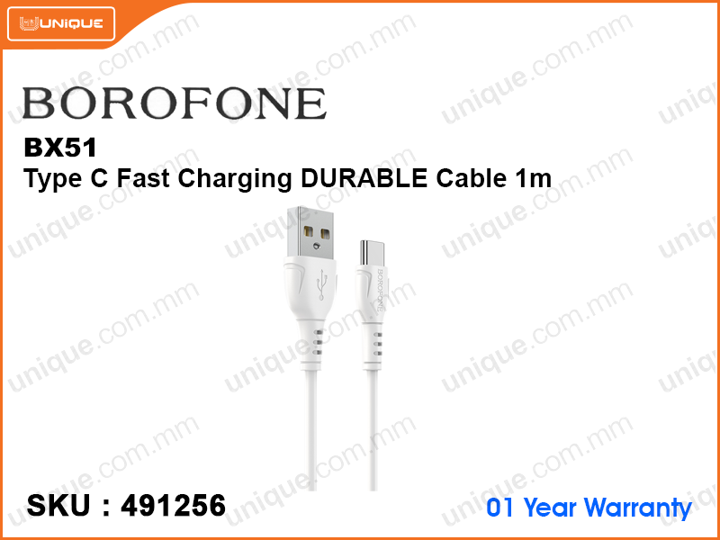 BOROFONE BX51 White Type C Fast Charging Durable Cable 1m