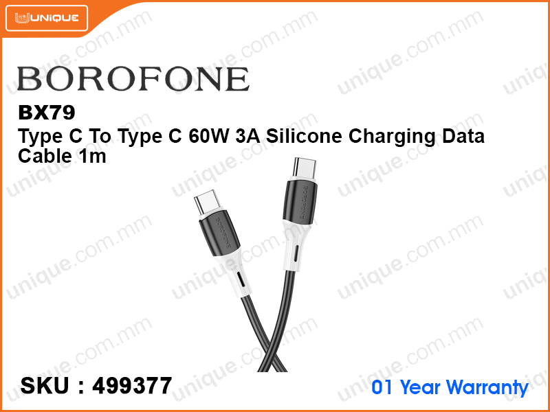 BOROFONE BX79 Black Type C To Type C 60W 3A Silicon Charging Data Cable 1m
