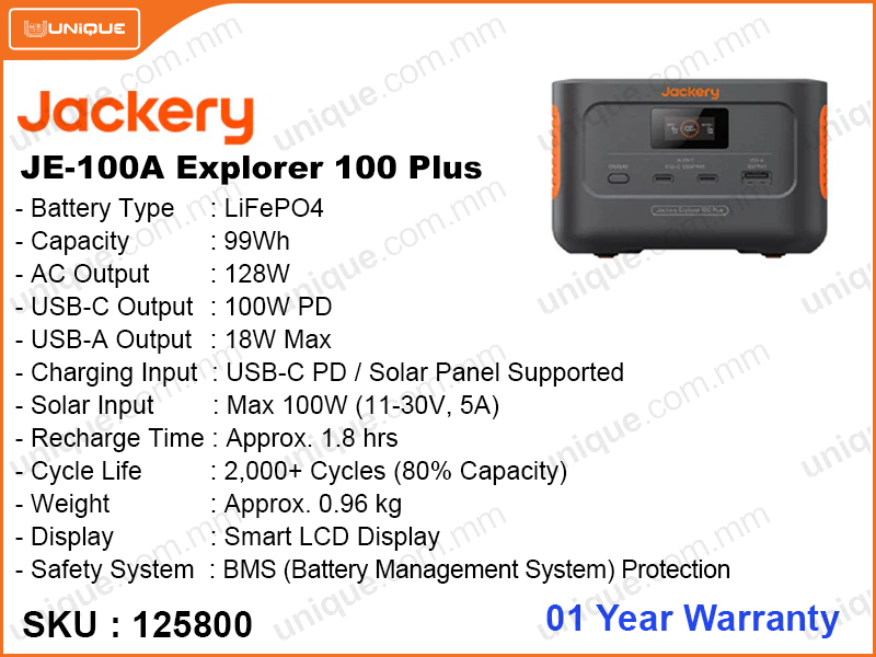 Jackery JE-100A Explorer 100 Plus 128W/ 99.2Wh Solar Generator