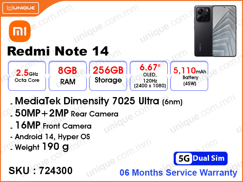 Redmi Note 14 5G 8GB, 256GB (06 Months Warranty)
