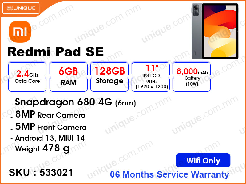 Redmi Pad SE 6GB, 128GB Wifi (06 Months Service Warranty)