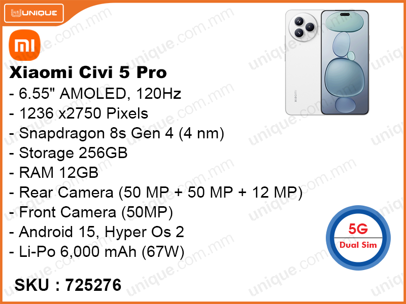 Xiaomi Civi 5 Pro 5G 12GB, 256GB (06 Months Service Warranty)